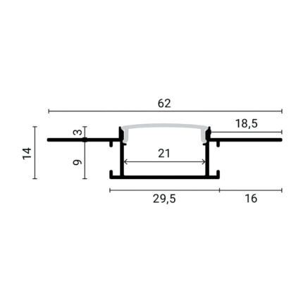 EuroSpot Προφίλ Αλουμινίου Γυψοσανίδας Ασημί Για Led Ταινίες L=2m 62x14mm NW=21mm Γαλακτερό Κάλυμμα