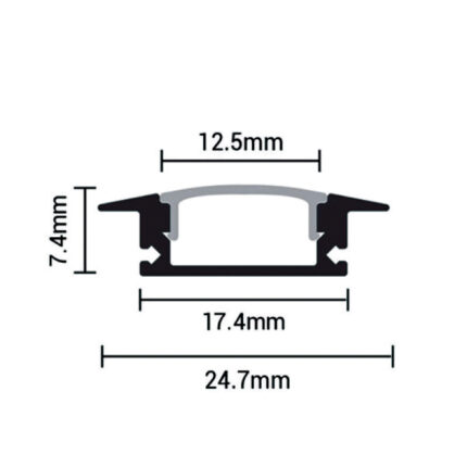 EuroSpot Προφίλ Αλουμινίου Χωνευτό Μαύρο Ταινίας Led L=2m 24.7×7.4mm NW=12.4mm Μαύρο Κάλυμμα