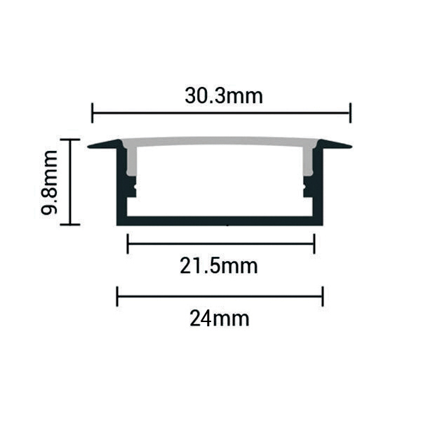EuroSpot Προφίλ Αλουμινίου Χωνευτό Ασημί Για Led Ταινίες L=2m 30.3×9.8mm NW=21mm Γαλακτερό Κάλυμμα