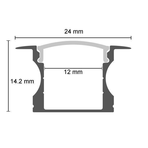 EuroSpot Προφίλ Αλουμινίου Χωνευτό Ασημί Ταινίας Led L=2m 24×14.2mm NW=12mm Γαλακτερό Κάλυμμα