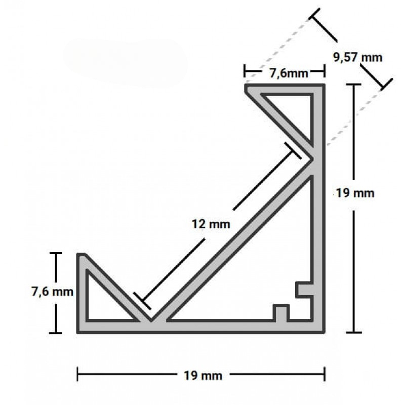 EuroSpot Προφίλ Αλουμινίου Γωνιακό Ασημί Ταινίας Led L=2m 19x19mm NW=12mm Γαλακτερό Κάλυμμα