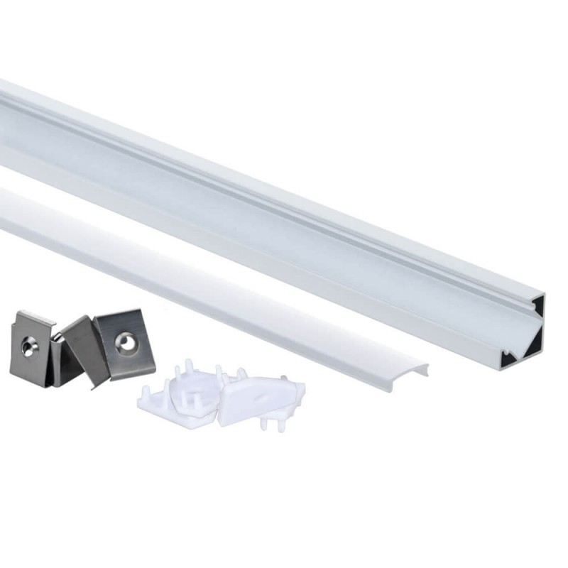 EuroSpot Προφίλ Αλουμινίου Γωνιακό Λευκό Ταινίας Led L=2m 19x19mm NW=12mm Γαλακτερό Κάλυμμα