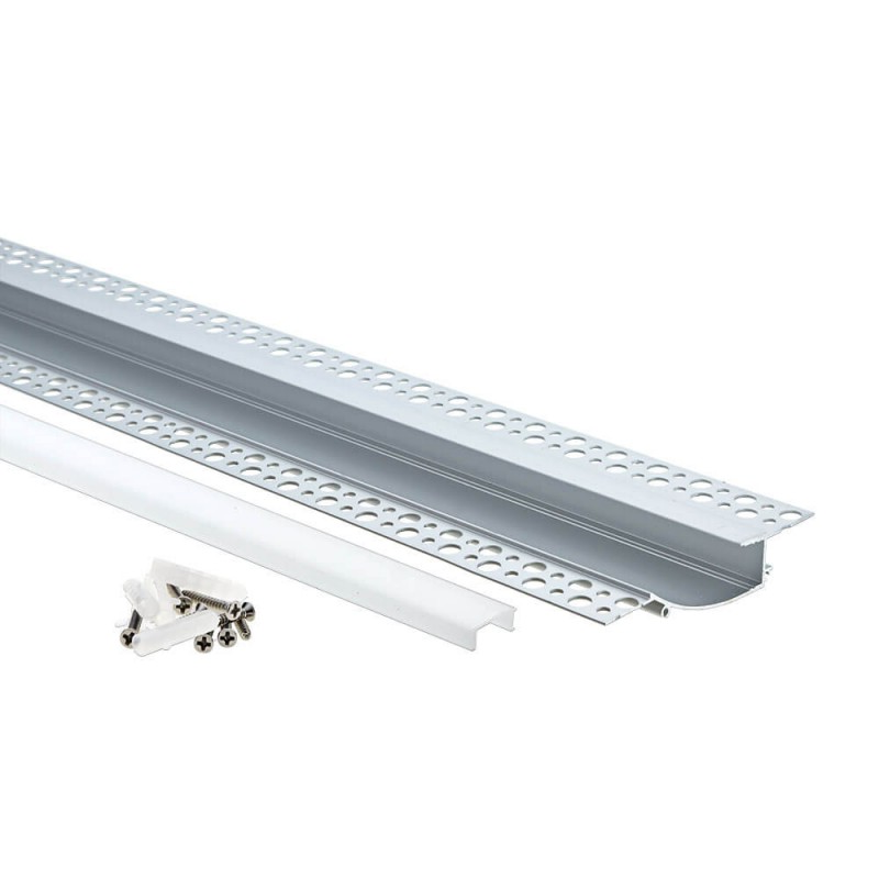 EuroSpot Προφίλ Αλουμινίου Γυψοσανίδας Ασημί Κρυφού Φωτισμού Για Led Ταινίες L=2m 98x19mm NW=16mm Γαλακτερό Κάλυμμα