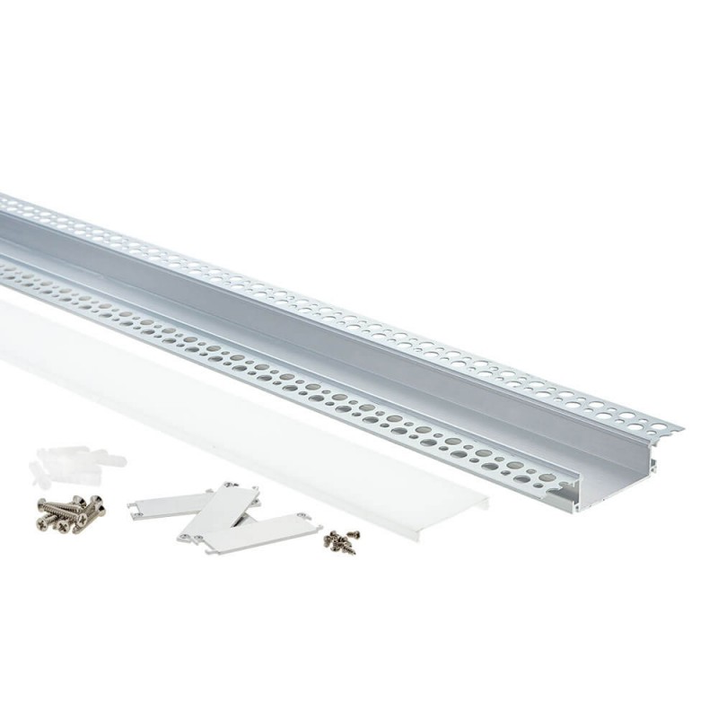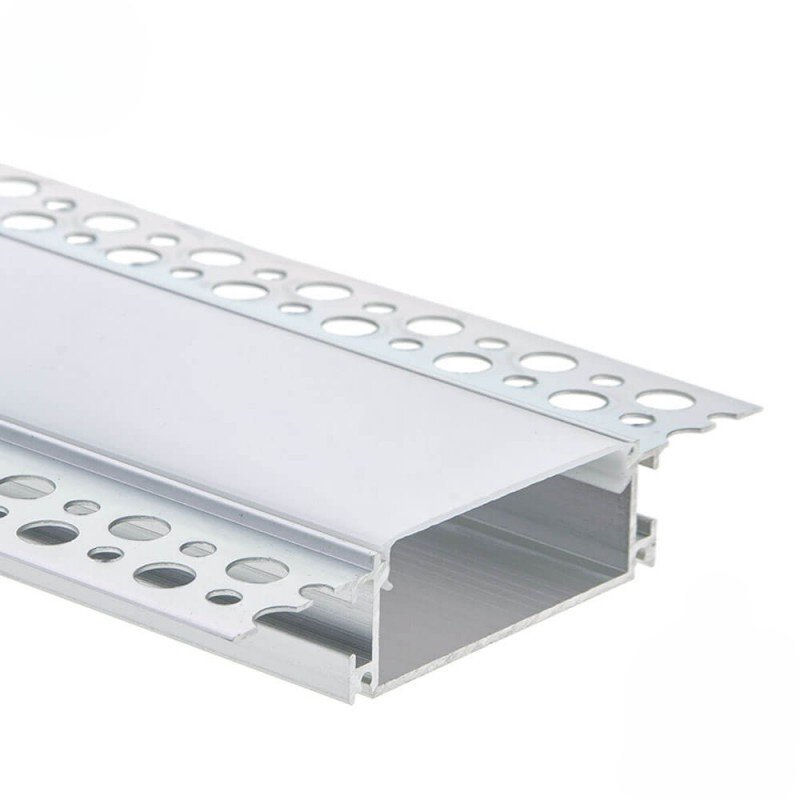 EuroSpot Προφίλ Αλουμινίου Γυψοσανίδας Για Led Ταινίες Ασημί L=2m 96x20mm NW=45mm Γαλακτερό Κάλυμμα