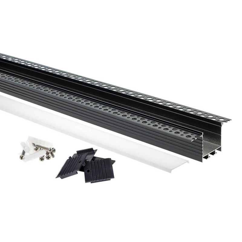 EuroSpot Προφίλ Αλουμινίου Γυψοσανίδας Μαύρο Για Led Ταινίες L=2m 71.5x35mm NW=31mm Γαλακτερό Κάλυμμα