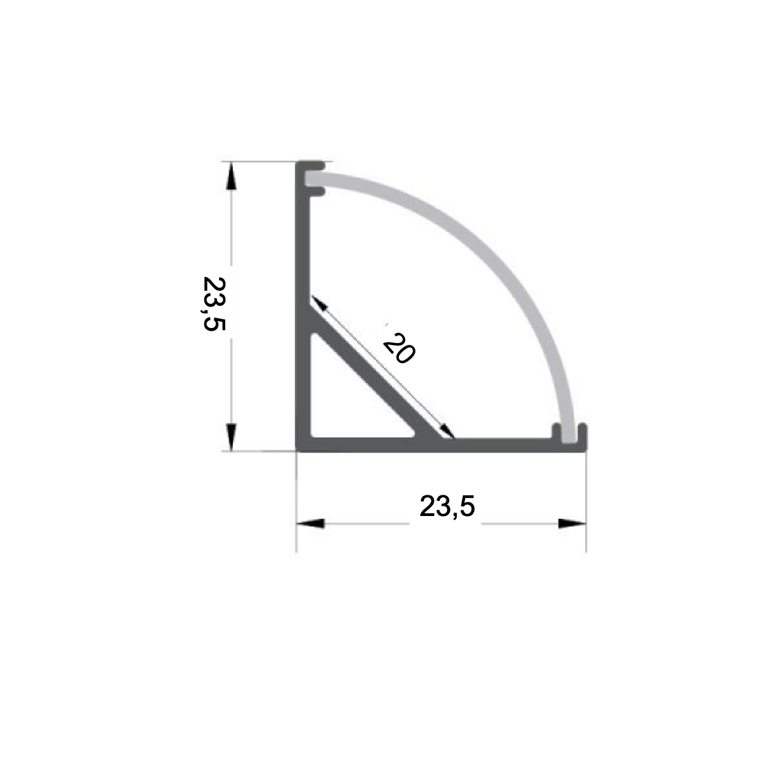 EuroSpot Προφίλ Αλουμίνιου Καμπύλο Ασημί Για Led Ταινίες L=2m 23.5×23.5mm NW=20mm Γαλακτερό Κάλυμμα